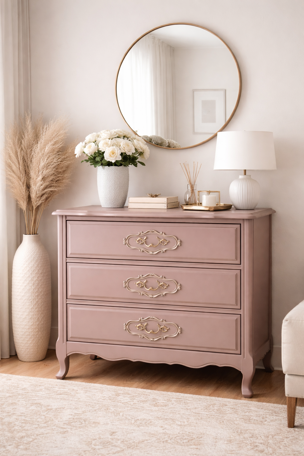 - Do metamorfozy wykorzystano: farby mineralne Fusion w kolorach Lavender Haze i Rose Water.