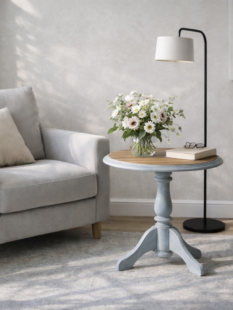 Stoliczek świetnie odnajdzie się zarówno we wnętrzach klasycznych, jak i w aranżacjach vintage, prowansalskich czy romantycznych. Może pełnić funkcję stolika kawowego lub miejsca na ulubione dekoracje, kwiaty czy lampę.